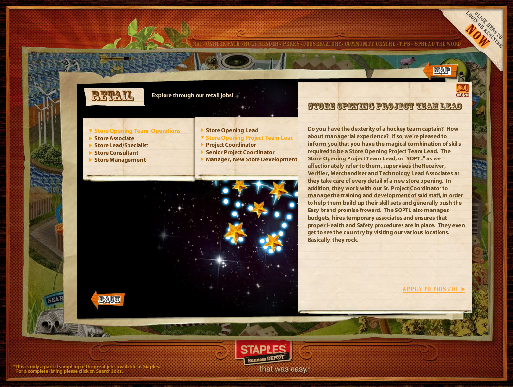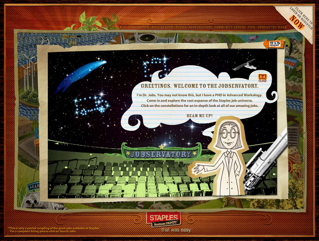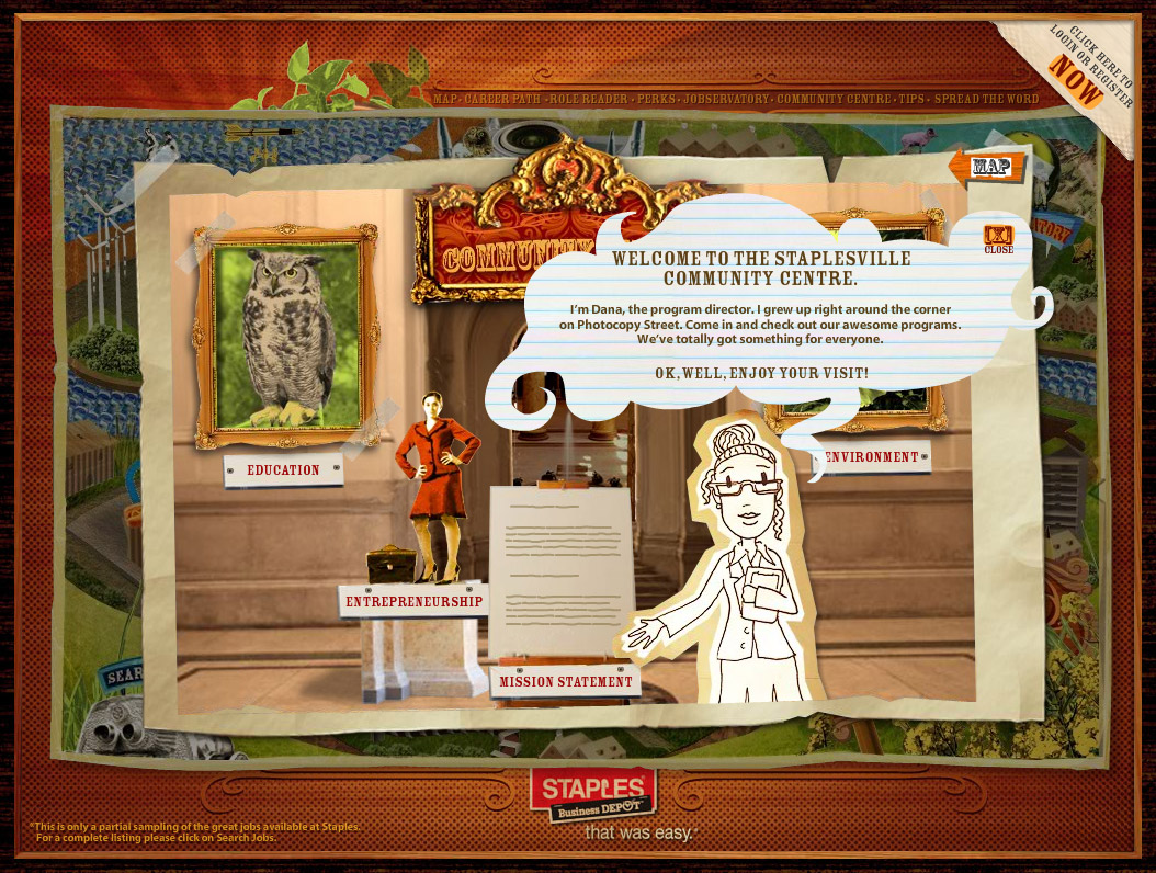 A few months ago we talked about Staples/Business Depot use of web 2.0 with their offering of Staplesville – an online game like recruiting tool. It’s alive now . . . www.staplesville.com