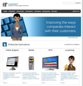 I just came across this company which is based in Edmonton – Codebaby. Codebaby is a ‘virtual agent’ – an avatar (cartoon?) character which interacts with humans. The virtual agents have various names – Cloe, Vicki, Page Turner and others. What makes this a Web 2.0 technology is it’s use in customer service and staff training which is interactive and can be delivered at remote sites.