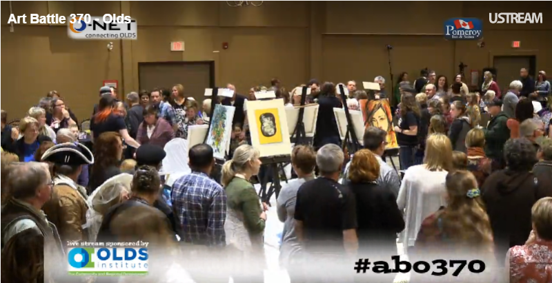 March has been a busy month for us and it’s not over yet! On March 19th we live streamed the Art Battle #370 Olds event from the Pomeroy Inns & Suites at Olds College. This third annual event out grew the Olds Legion and moved into the banquet room at the Pomeroy.